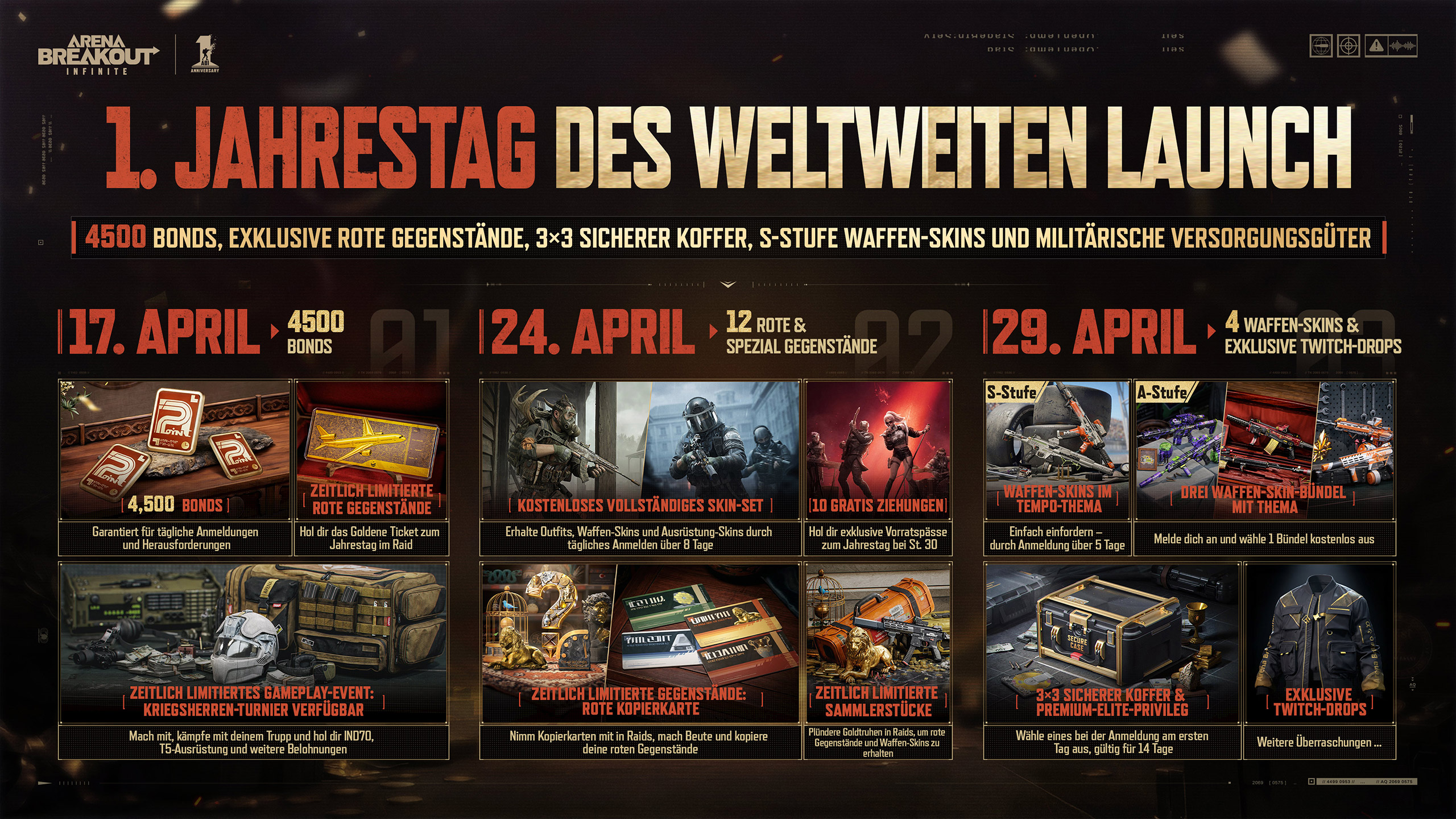 Dein Trophäenraum ist mehr als nur eine Ausstellung – er ist das Herzstück deines Fortschritts. Zeig stolz deine hart erkämpfte Beute, während du leistungsstarke Munition und fortgeschrittene Panzerung herstellst. Mit neuen Saison-Herausforderungen und Belohnungen wird dein taktischer Vorteil jeden Tag größer. Vergiss nicht das Kronjuwel: ein kostenloser 3×3 Titankoffer, um hochwertige Ausrüstung in jedem Raid zu sichern.