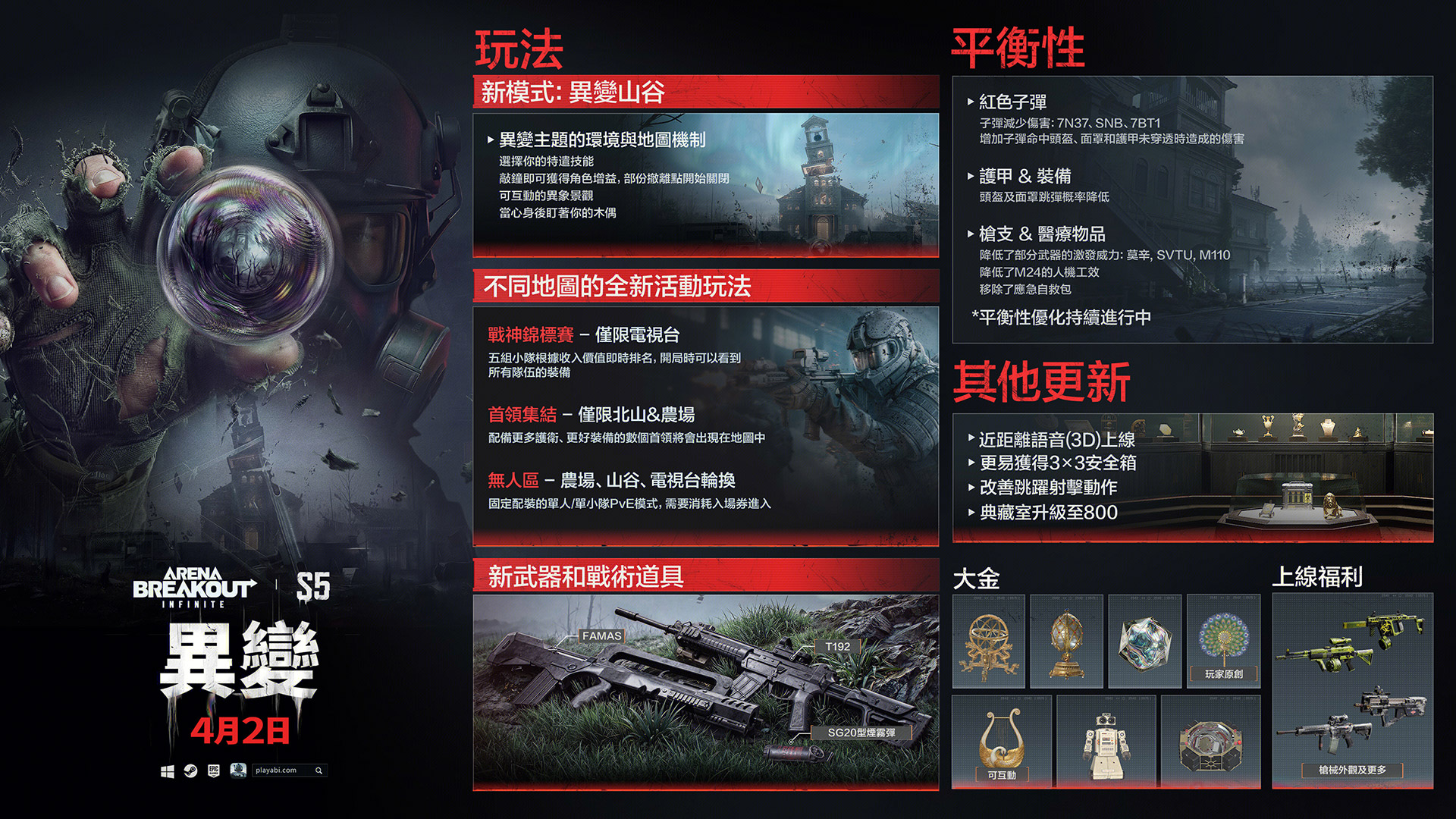 《Arena Breakout: Infinite》致力於透過類似「快速整備」與「地圖標點」等豐富的易用性功能,為所有玩家敞開大門。這種對玩家體驗的重視在S5中得到了延續:隨著近距離語音的加入和數值平衡的深度改善,我們確保每位玩家都能在公平、流暢且精巧的對戰中,享受極致的撤離體驗。